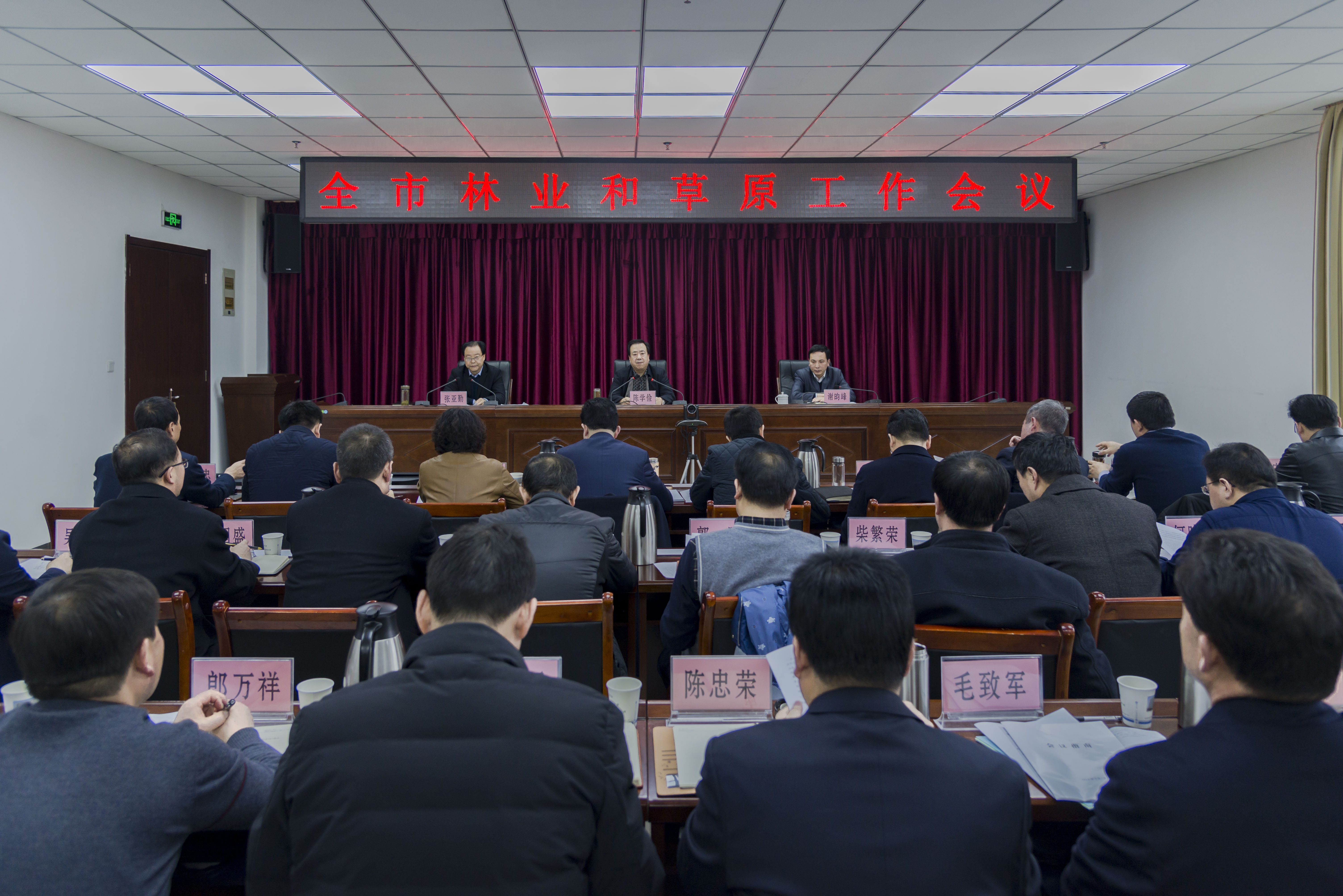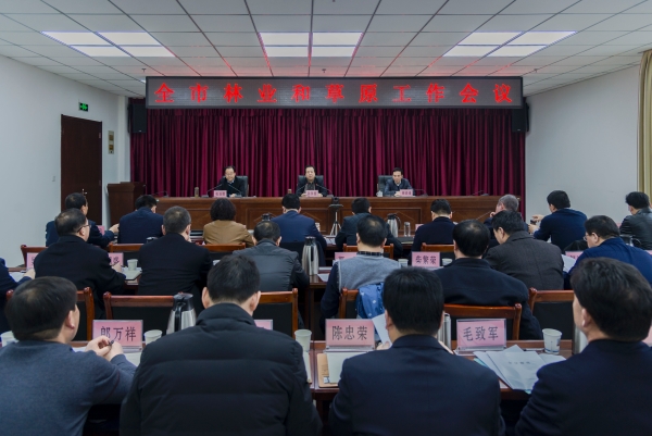 3月7日下午,市政府在定西召开了全市林业和草原工作会议,会议以习近平新时代中国特色社会主义思想为指导,深入学习贯彻党的十九大、十九届二中、三中全会精神,认真落实省市“两会”精神、市委四届八次全会暨市委经济工作会议精神、市委农业农村工作会议暨打赢脱贫攻坚战誓师大会精神和全省林业和草原工作会议精神,回顾总结2018年林业和草原工作,研究谋划新时期林业和草原工作,安排部署2019年各项任务。签订2019年度全市林业草原工作目标责任书、生态扶贫目标责任书等5个目标责任书。会议传达了市委书记唐晓明同志和市委副书记、市长戴超同志对全市林业和草原工作的批示精神,书面传达了全省林业和草原工作会议精神,市政府副市长陈学俭出席会议并讲话,市政府督查室副主任谢昀峰出席会议,市林业和草原局党组书记、局长张亚勤作工作报告。各县区政府分管县区长,市发改委、市财政局、市自然资源局、市交通运输局、市农业农村局、市水务局、市生态环境局、市应急管理局、市文体广电和旅游局、市畜牧局及市畜牧局草原监督站分管负责人,市林业和草原局班子成员及局机关中层以上干部、直属单位班子成员共80多人参加了会议。