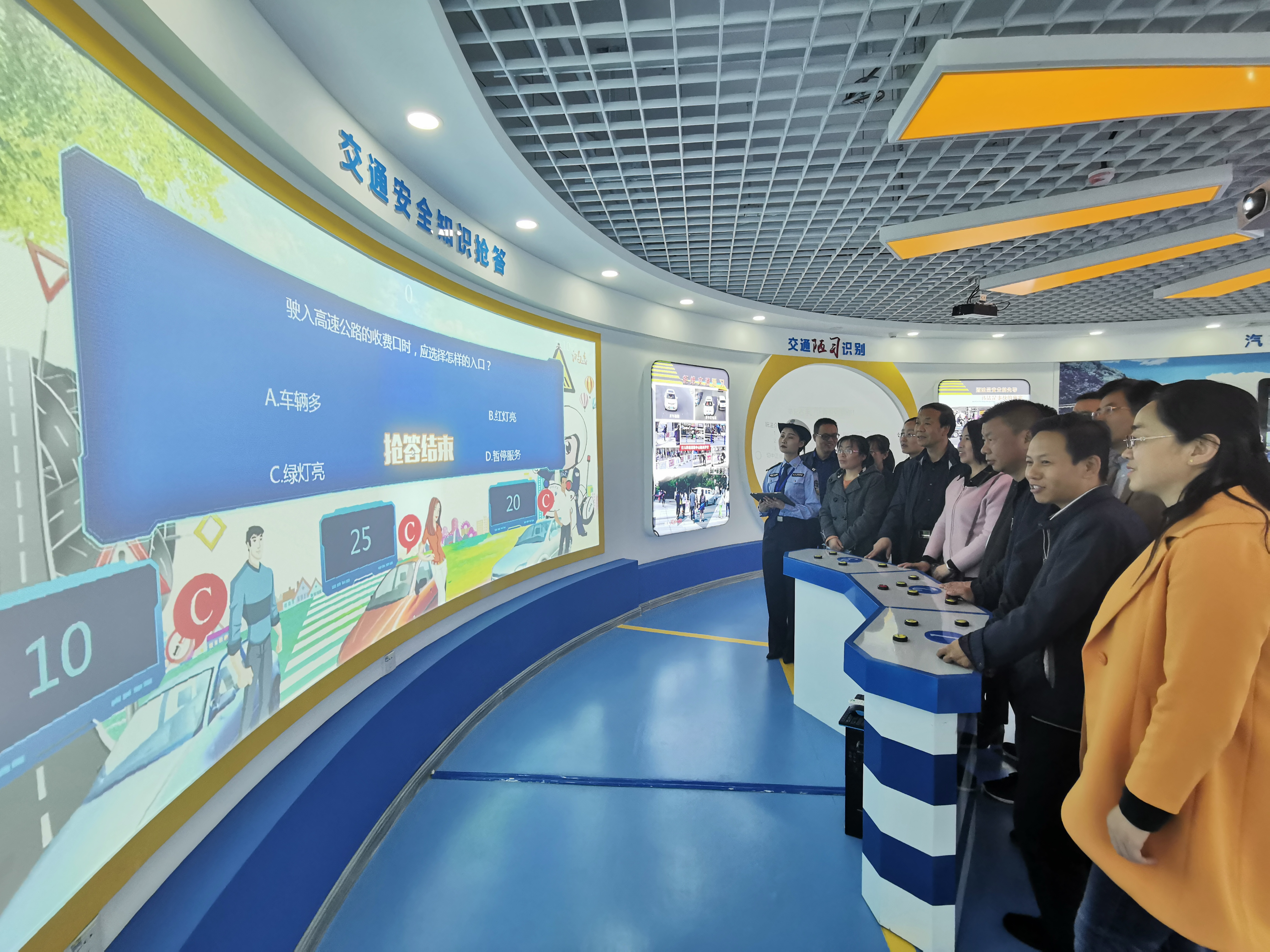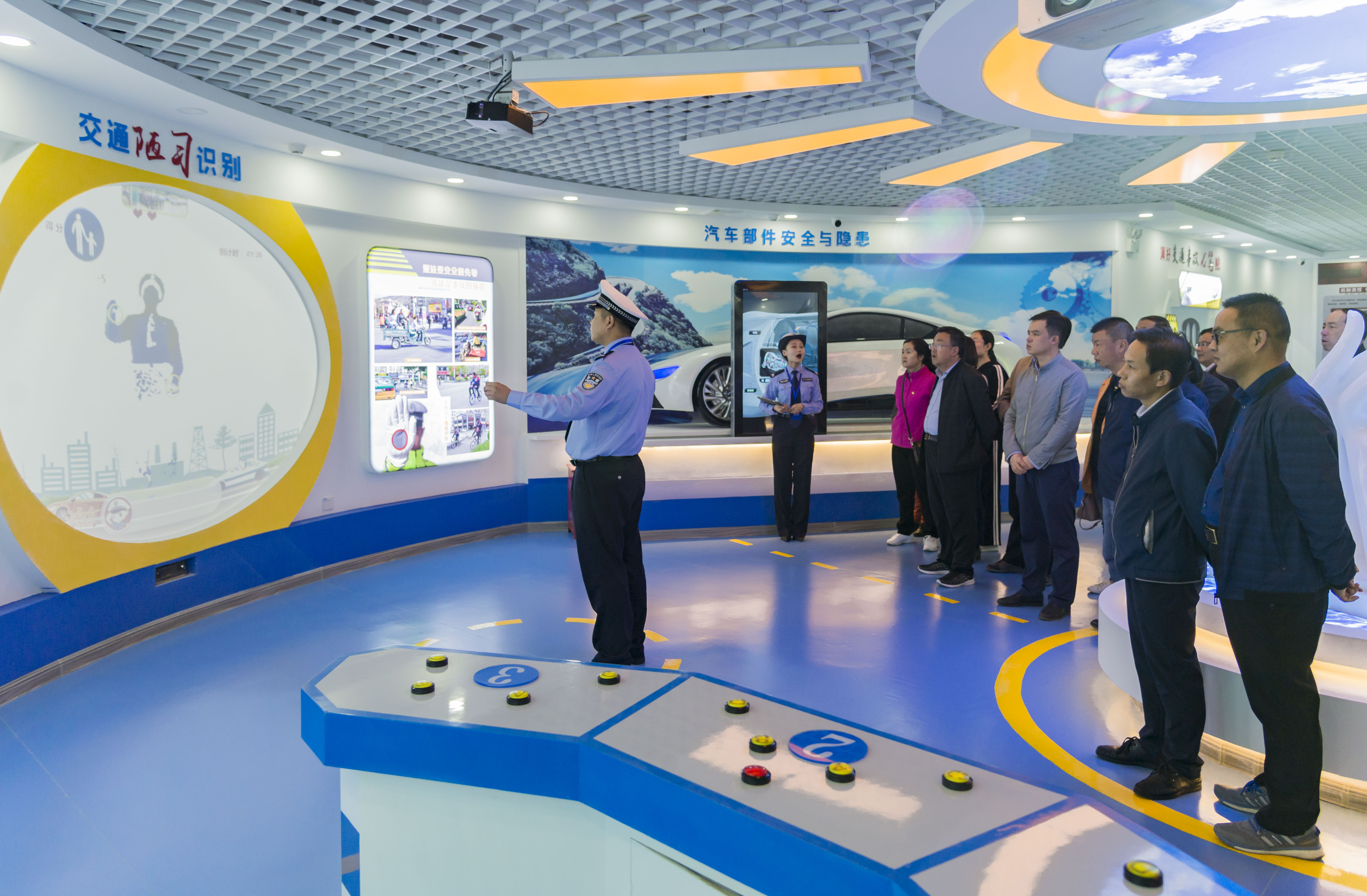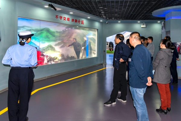 在解说人员的带领下,大家依次参观了基地人车路厅、警示教育厅、感悟与敬畏厅、公共教育厅、学习体验厅等七个主题展厅,深入了解了全市道路交通的发展历史、典型事故案例分析及酒驾、“三超一疲劳”驾驶的危害性,观看了道路违法行为造成的交通事故视频案例。大家还在高科技体验区参与互动,亲身体验模拟行人过红绿灯、机动车模拟驾驶装置、安全带碰撞体验装置、醉酒模拟体验、危险驾驶体验等趣味性的模拟操作。通过一系列的现场参观学习和体验,进一步加深和强化了全体党员干部对道路交通安全意识和文明驾驶观念的认识,深化了自觉学法、知法、守法的意识,深刻认识到遵守交通法规和重视交通安全的重要性和必要性。