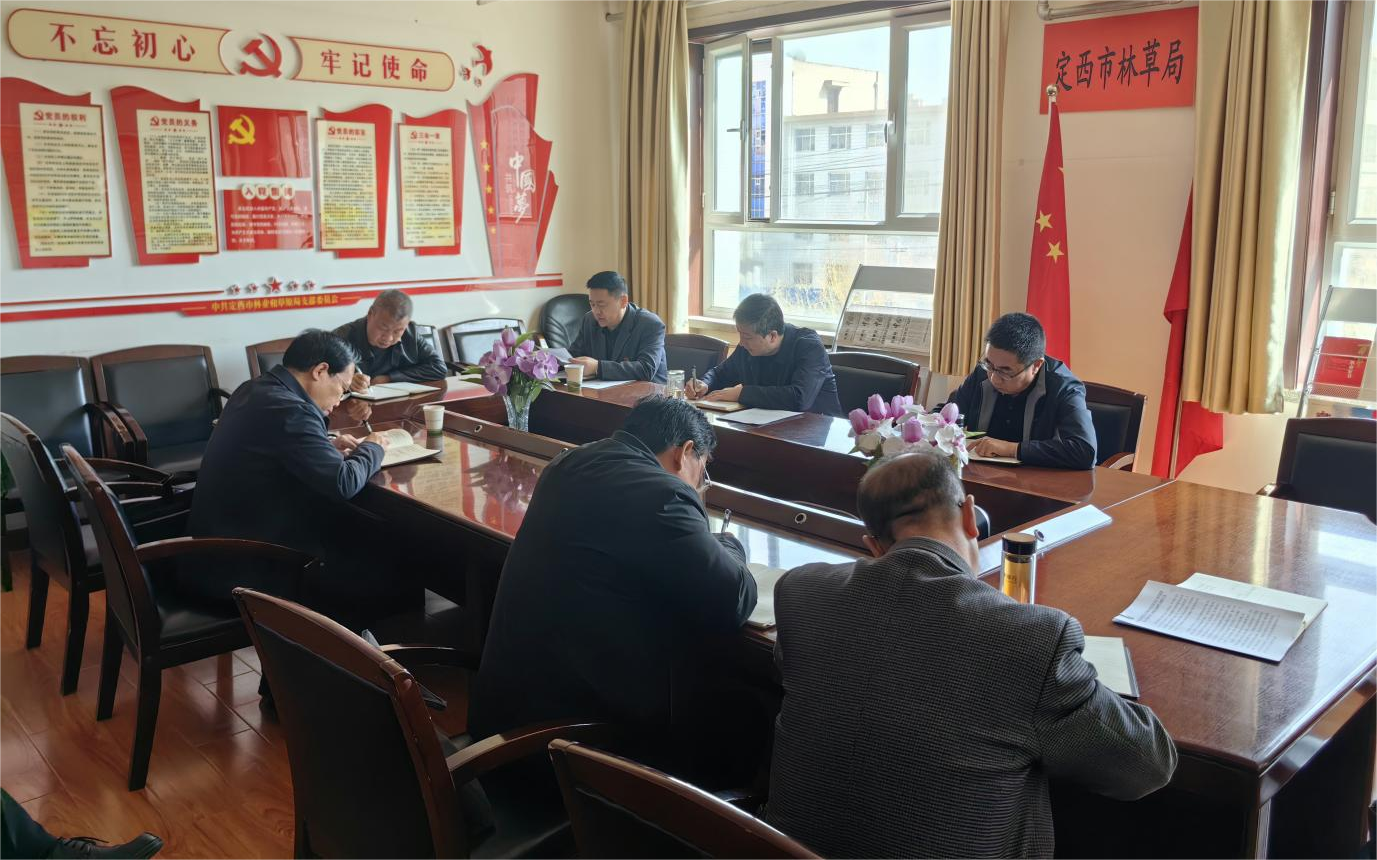 2025年3月20日下午,市林草局召开党组扩大会议,传达学习中央、省市委党的建设工作领导小组会议精神,审议通过了《定西市林业和草原局开展深入贯彻中央八项规定精神学习教育工作方案》,市林草局党组书记、局长梁涛同志对开展深入贯彻中央八项规定精神学习教育工作进行了安排部署。