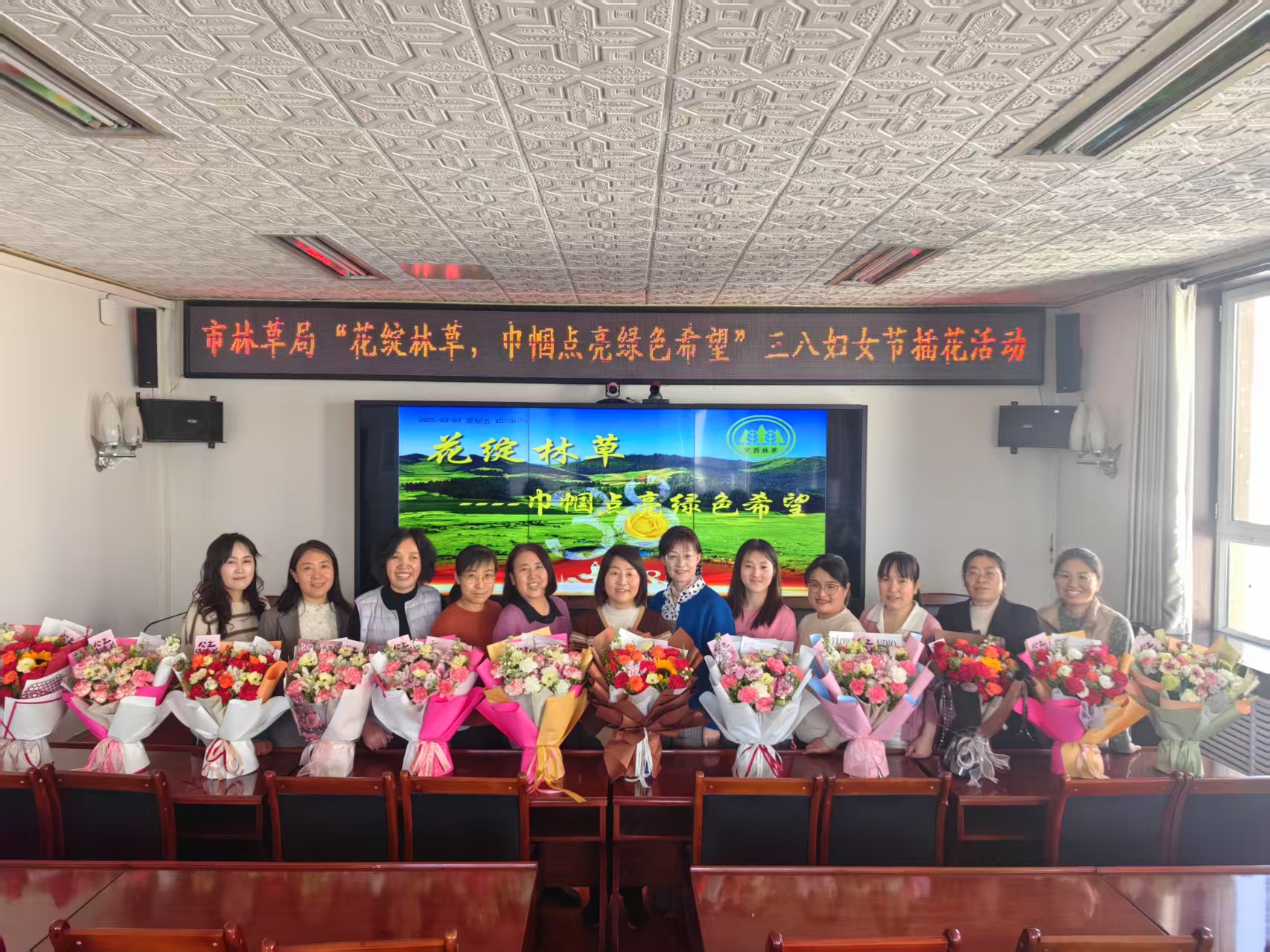 在春回大地、万物复苏的美好时节,迎来了第 115 个 “三八”国际劳动妇女节。为丰富局机关女职工的精神文化生活,激励女职工以饱满的热情和最佳的工作状态在本职岗位上建功立业,3月7日市林草局精心组织了一场别开生面的插花活动,活动以“花绽林草 巾帼点亮绿色希望”为主题,局机关12名女职工在花香四溢中度过了一段美好时光。
